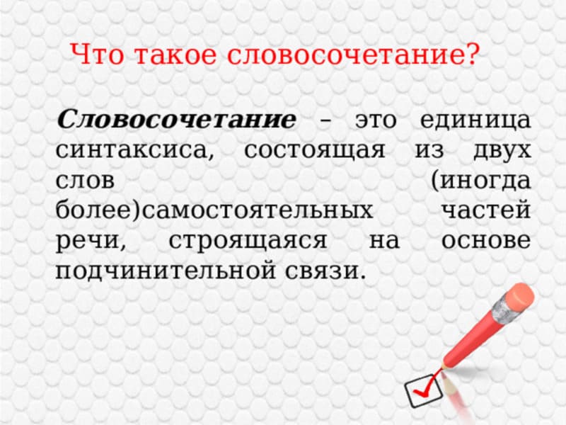 Словосочетание — это соединение двух или более слов, объединённых смысловой и грамматической связью. В отличие от предложения, словосочетание не выражает законченной мысли, но оно выполняет важную функцию — уточняет, расширяет или конкретизирует значения слов. Например, в словосочетании «красивый дом» прилагательное «красивый» уточняет характеристику существительного «дом».