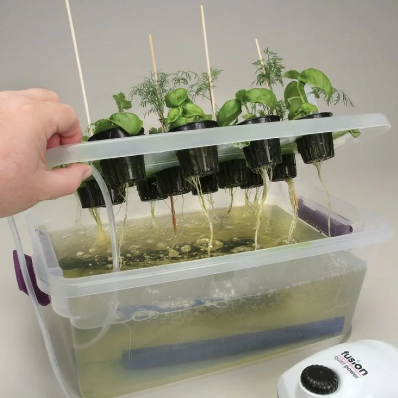 Одной из самых популярных разновидностей гидропонных устройств является система глубоководных культур (DWC). В таких установках корни растений находятся в воде, насыщенной кислородом. Для этого используются специальные компрессоры, которые обогащают воду воздухом.