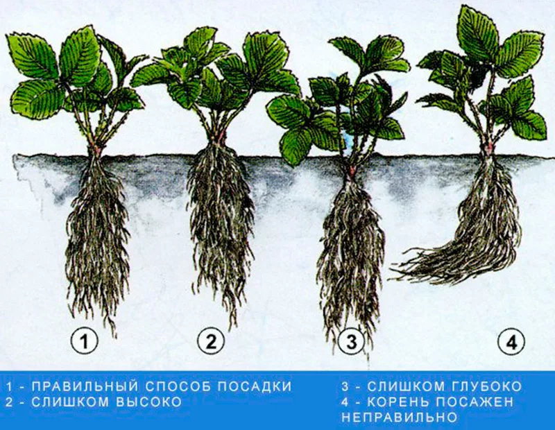 При высадке рассады необходимо следить за тем, чтобы корневая шейка растения находилась на уровне почвы. Слишком глубокая посадка может привести к загниванию, а слишком мелкая — к высыханию корней.
