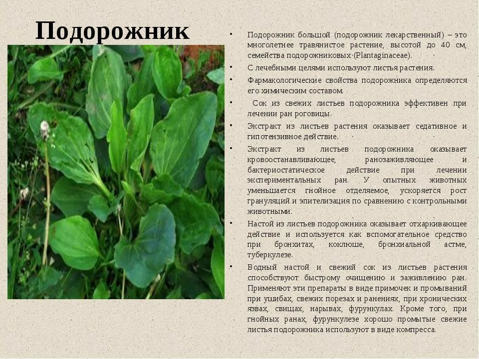 - Настой листьев подорожника принимают внутрь при кашле, бронхите, гастрите, язвенной болезни и других заболеваниях желудочно-кишечного тракта.