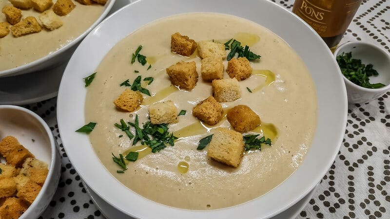 Перед подачей добавьте в суп специи по вкусу. Это могут быть черный молотый перец, мускатный орех или сушеный тимьян. Для любителей острого можно добавить немного паприки или мелко нарезанный чеснок. Подавайте блюдо горячим, украсив зеленью — петрушкой, укропом или зеленым луком.